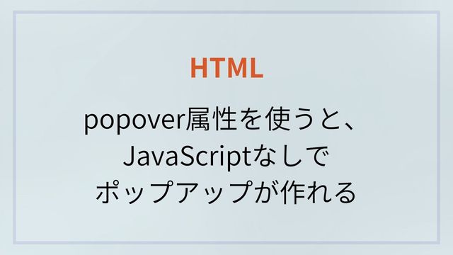 HTML popover属性で作るJavaScriptなしのポップアップ